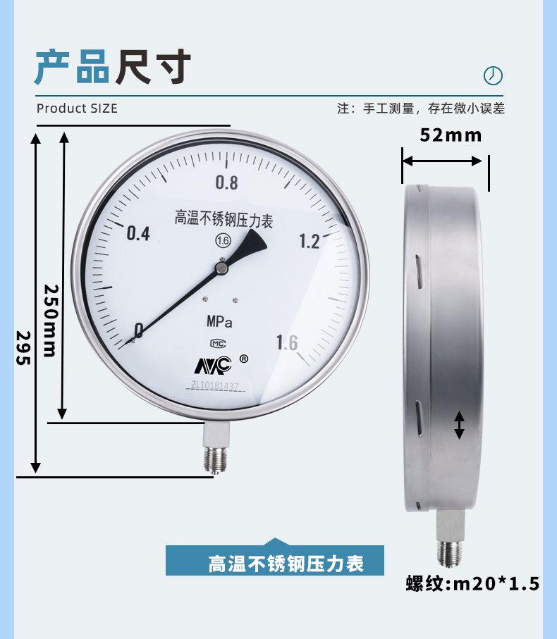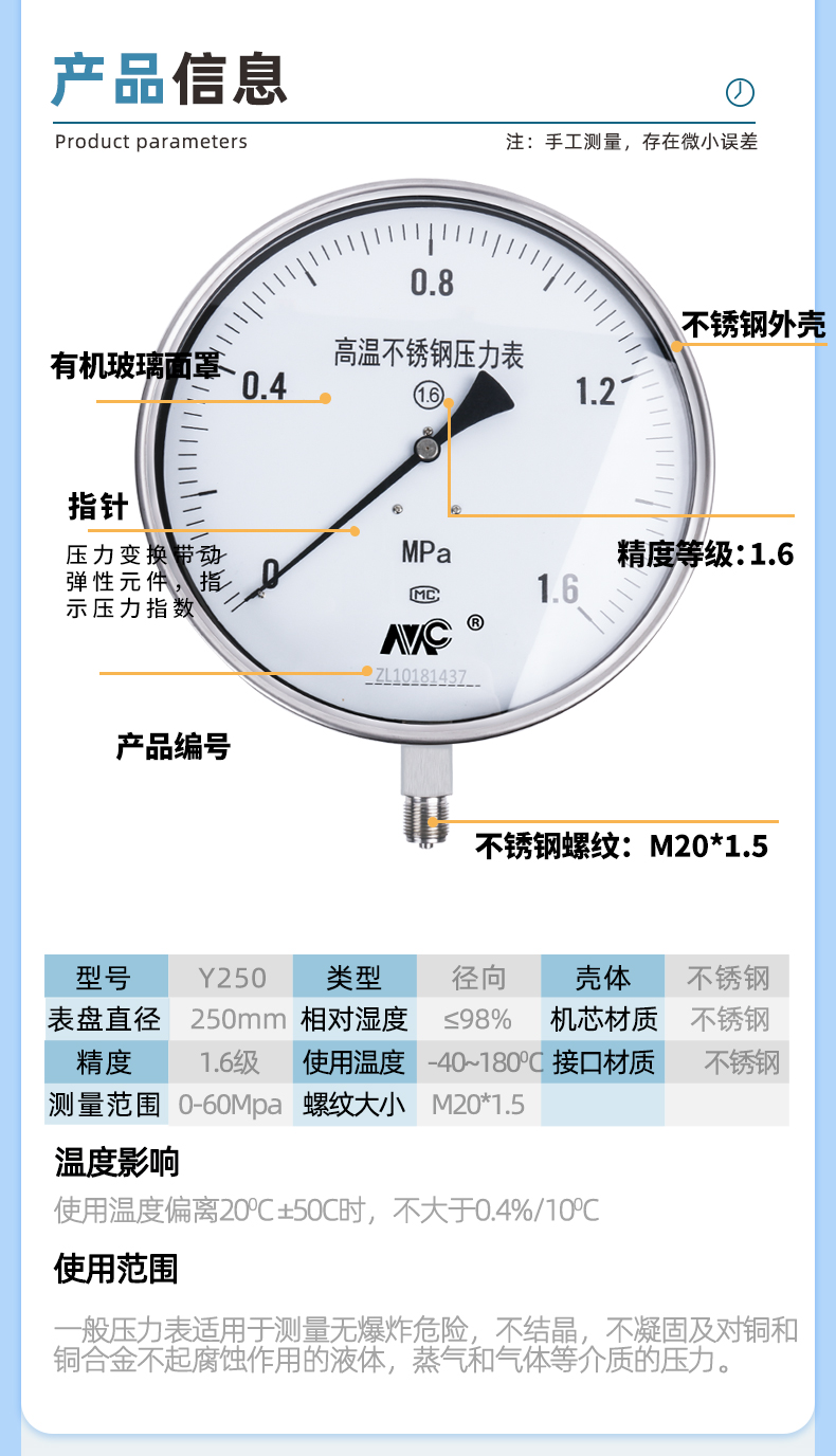 Y250BF不銹鋼壓力表