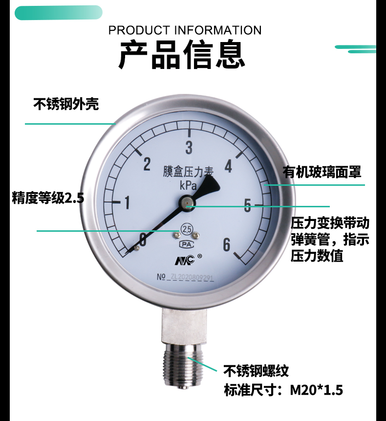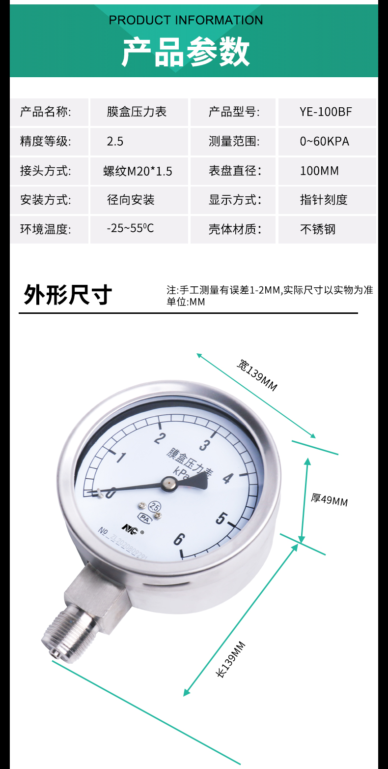 YE100BF全不銹鋼膜盒壓力表