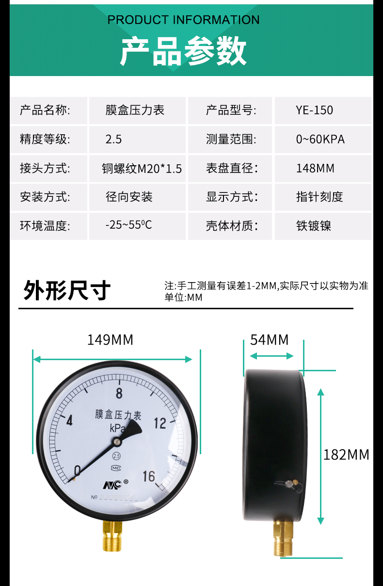 YE-150膜盒壓力表